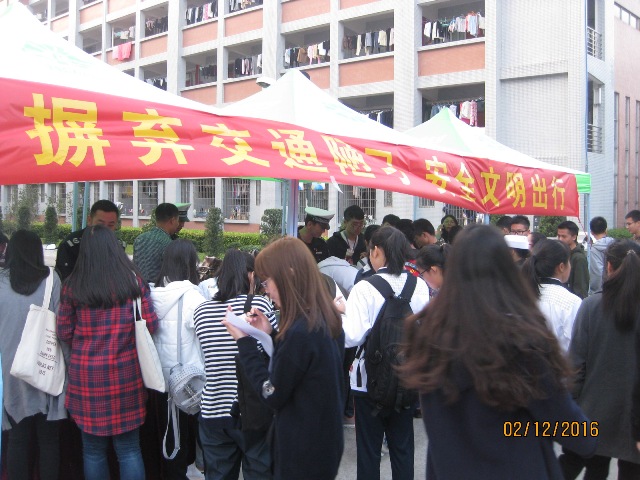 为了深入开展文明校园建设,2016年12月2日学校与广州市、区交警主管部门及属地交警四中队、九龙镇安委会联合开展了“文明交通、安全校园”主题讲座和“摒弃交通陋习、安全文明出行”的主题文明宣传活动。