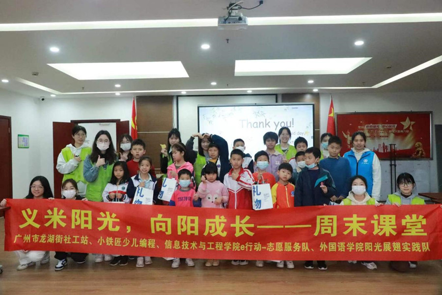 人间最美四月天,春风拂面志愿行。为让学生学习新鲜有趣的知识,培养良好的兴趣爱好,外国语学院阳光展翅实践队于2023年4月1日在龙湖街道开展第一期“向阳学堂”志愿者服务活动。